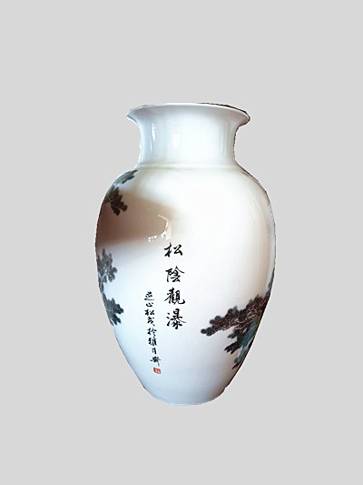 - 工艺技法:采用景德镇传统粉彩工艺,画面中松树苍劲、瀑布灵动,通过细腻笔触与色彩层次,