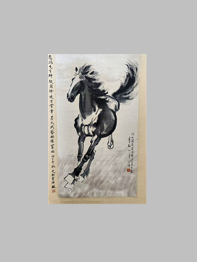 - 艺术成就:他在绘画领域成就卓越,尤擅画马,其笔下的马形神兼备、充满力量感,如《奔马图》等作品极具代表性。同时,他在人物、花鸟等题材的创作上也有很高造诣,将西方绘画的写实技法与中国传统绘画的笔墨韵味相融合,形成了独特的艺术风格。