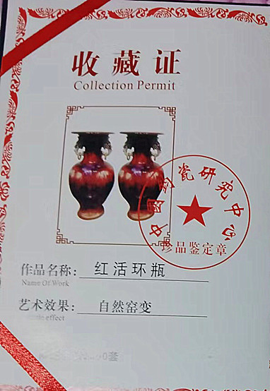 窑变的唯一性:每一件钧瓷的釉色、纹理都是 “孤品”,您这件红釉活环瓶的窑变效果(红釉浓淡、活环工艺)具有不可复制的艺术个性。