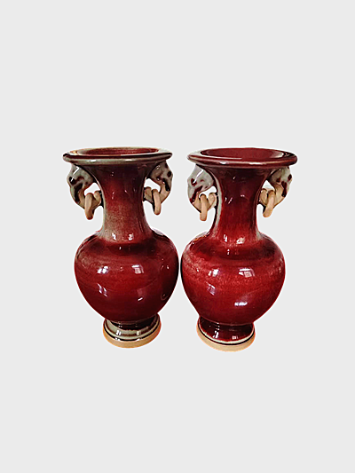 器型与装饰的美学:器型曲线流畅,象鼻活环兼顾实用(可摆动)与装饰性,体现 “动静相宜” 的东方美学;红釉色泽符合中式 “吉庆审美”,视觉冲击力强。
