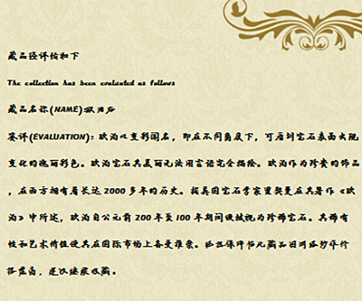 市场认可度:欧珀在国际宝石市场中认可度较高,兼具装饰性与文化属性,长期来看是宝石类藏品中较为稳定的品类之一,适合作为特色藏品纳入收藏序列。