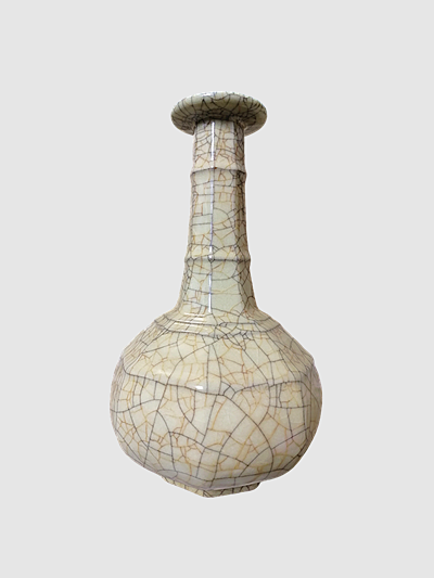 至于收藏价值,它是古瓷收藏领域里的 “文脉标本”。哥窑本就是宋代 “五大名窑” 中最具传奇色彩的品类,存世完整器寥寥无几,而此弦纹瓶器形标准、开片精美、釉色醇正,是哥窑典型器中的精品,既承载着宋代制瓷技艺的最高水准,又凝聚着特定历史时期的审美精神,是研究宋代陶瓷、文化、美学的 “活史料”。于藏家而言,它不止是一件藏品,更是可触摸的文明碎片 —— 每一道开片都是时光的落款,每一寸釉色都是历史的余温,拥有它,便是与千年宋韵达成了一场跨越时空的精神共鸣,其在文化传承与审美延续上的价值,早已超越器物本身,成为华夏文明美学基因的具象载体。