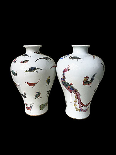作为光绪官窑的精品,这对梅瓶的收藏价值更在于其历史与文化的双重沉淀。它不仅是晚清制瓷工艺的杰出代表,更是百年前社会风貌与审美趣味的缩影,每一处釉色的晕染、每一笔线条的流转,都在诉说着那个时代的工艺水准与文化底蕴。在岁月的流转中,整器保存完好,釉色如初,彩绘鲜妍,其承载的不仅是 “大清光绪年制” 的官窑信誉,更是中华民族对 “吉祥太平” 永恒追求的精神符号。它既是可供案头赏玩的艺术珍品,也是传承文化的历史信物,为后世打开了一扇窥见晚清宫廷美学的窗口,让收藏者在摩挲瓷面的同时,与百年前的匠心对话,在花鸟相依的图景中,感受传统文化生生不息的魅力。