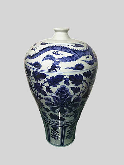从文化价值而言,它是元代多元文化碰撞的结晶。蒙古帝国的扩张带来了波斯地区的优质钴料,也让草原民族对雄浑器型的审美,与中原传统的花鸟龙凤纹样深度融合。瓶身的龙纹既保留了唐代以来龙纹的威严,又融入了游牧民族的奔放气质;缠枝牡丹则延续了宋代花鸟画的写实传统,却以更饱满的构图彰显元代的盛世气象。它不仅是一件盛酒器具,更是元代统治者 “家国天下” 理念的物质载体,龙纹象征皇权稳固,牡丹寓意盛世繁华,龙凤相携则暗含着对江山永固、四海升平的祈愿,每一处纹样都承载着一个时代的文化密码。