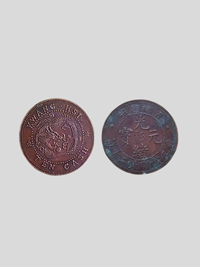 从文化价值来看,吉林省造光绪元宝是晚清东北边疆经济、政治与文化的重要实物载体。光绪年间,吉林地区作为清朝的龙兴之地,经济贸易日益繁荣,货币需求激增,吉林机器局应运而生,开启了东北自主铸币的先河。此枚钱币的铸造,不仅规范了当地的货币流通,更反映了晚清时期东北地区的经济发展状况、对外贸易格局以及货币制度改革的历史进程。币面融合的龙纹图腾,是中华民族传统文化的核心符号,象征着皇权、祥瑞与权威,承载着深厚的民族文化内涵;而英文标注的出现,则是晚清国门洞开、中西文化碰撞交融的历史缩影,见证了中国近代化进程中文化的多元发展。此外,吉林省造光绪元宝作为边疆省造钱币的代表,填补了东北近代铸币史的空白,为研究晚清边疆治理、民族融合以及地方经济发展提供了珍贵的实物资料,具有不可替代的历史文化价值。