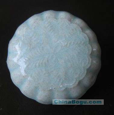 青白瓷有各式盘、碗、瓶、壶、军持、盒子等。碗有六瓣花口的造型,有的里饰6条凸线,有的饰划花间篦麻纹,有的外刻复线、内饰篦划纹,中心刻团菊纹,还有光素的、饰大小菊瓣纹的或唇口较宽的,形式多样。军持腹部比较丰满,胎较厚,器身饰酱彩,这些都是安溪窑的特色。